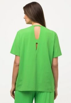 Ulla Popken À MANCHES COURTES PROFONDES DÉCOUPES DÉCOLLETÉ ROND – T-Shirt Print – Vert Pomme