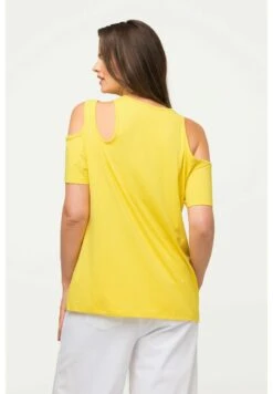Ulla Popken À MANCHES COURTES COL ROND ET JOLIES DÉCOUPES – T-Shirt Basic – Bouton Dor