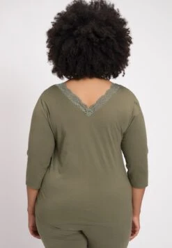 Ulla Popken V-HALS, 3/4-MOUWEN – Nachtwäsche Shirt – Lodengroen