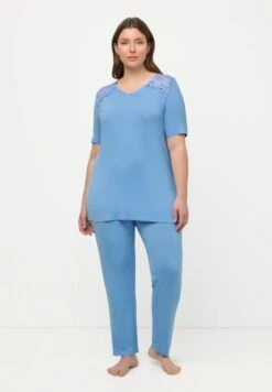 Ulla Popken MANCHES COURTES ET DÉCOLLETÉ EN V – Nachtwäsche Set – Bleu Clair