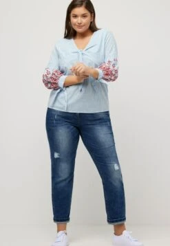 Ulla Popken KARO KELCHKRAGEN 3/4 ARM – Hemdbluse – Lichtblauw
