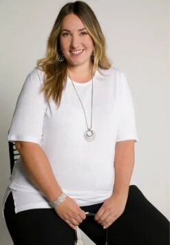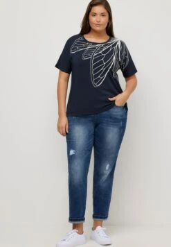 Ulla Popken AVEC IMPRIMÉ. DÉCOLLETÉ ROND ET MANCHES COURTES. COUPE R – T-Shirt Print – Framboise