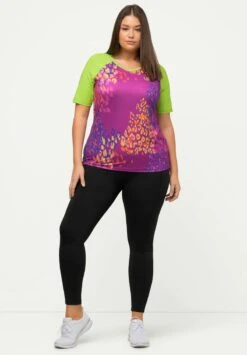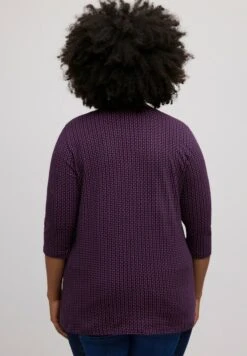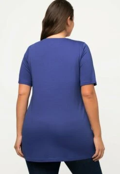 Ulla Popken LONG À IMPRIMÉ PATCHWORK. LIGNE A, COL ROND ET MANCHES C – T-Shirt Print – Marine