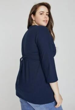 Ulla Popken À FLEURS. DÉCOLLETÉ EN V, MANCHES COURTES. CORDON DE SERR – Bluse – Herbe Verte