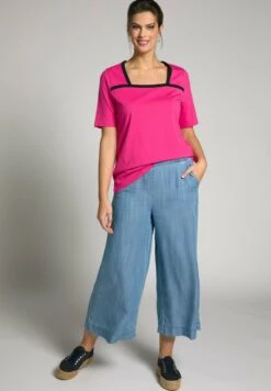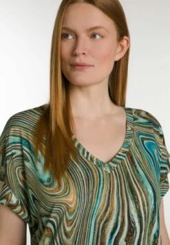 Ulla Popken OVERSIZED DÉCOLLETÉ ROND ET MANCHES COURTES – T-Shirt Print – Roseau Clair