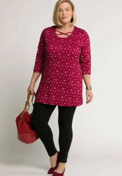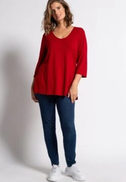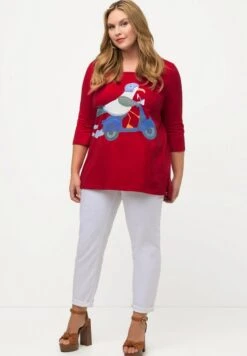 Ulla Popken LONG IMPRIME FLORAL DECOLLETE ROND BANDES DECORATIVES – T-Shirt Print – Rouge Carmin