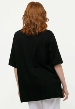 Ulla Popken LONG À MOTIF GRAPHIQUE DÉCOLLETÉ CARRÉ ET MANCHES COURT – T-Shirt Print – Noir