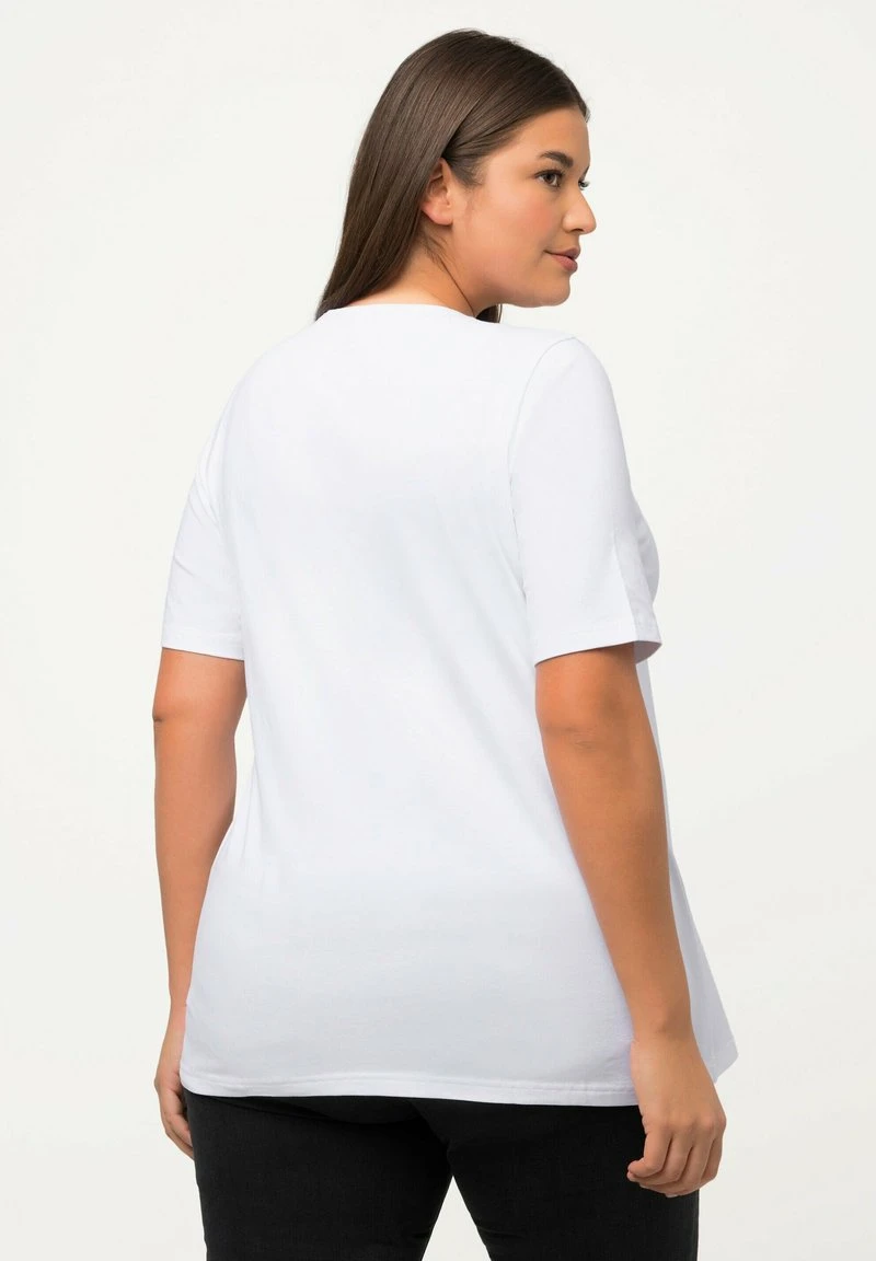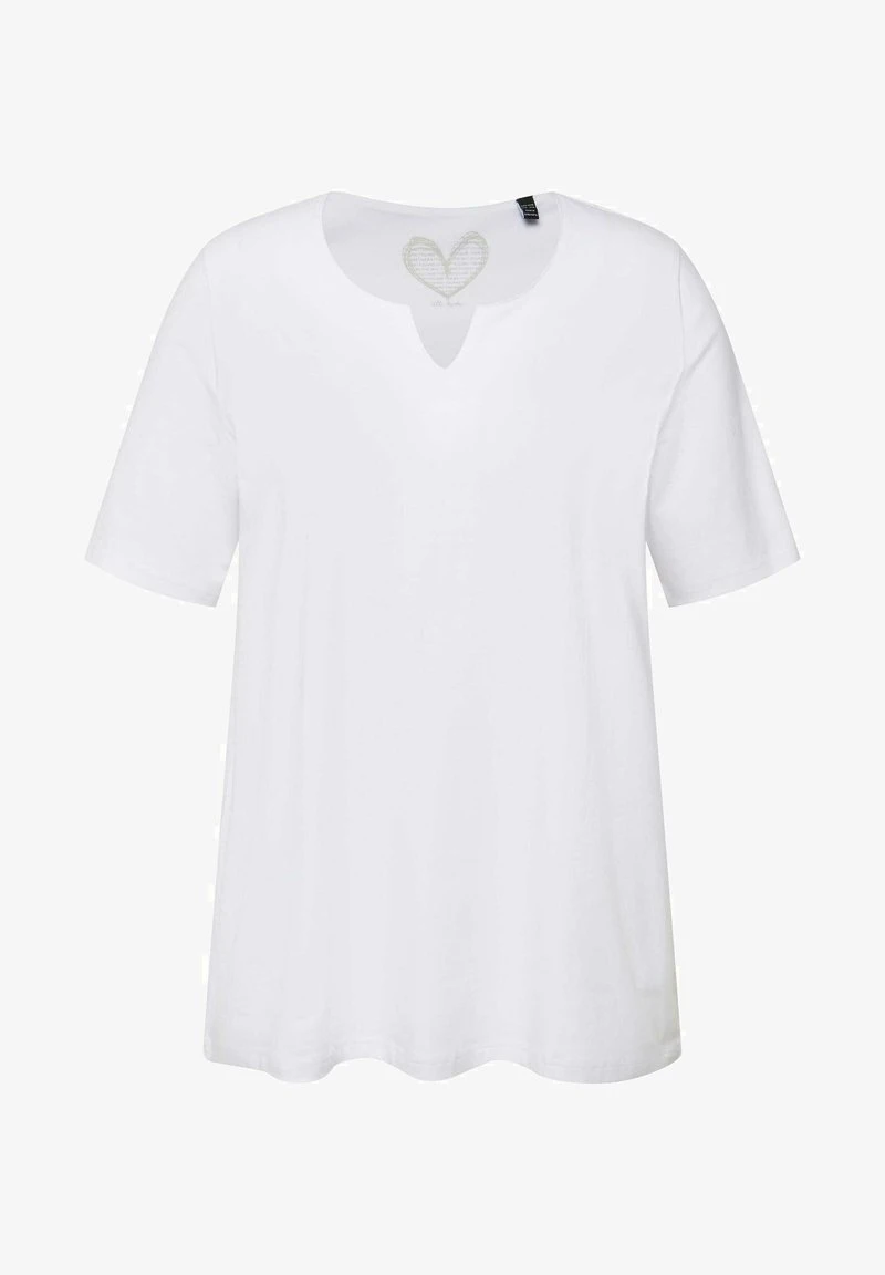 Ulla Popken À MANCHES COURTES, AVEC DÉCOUPE EN FORME DE GOUTTE. LIGN – T-Shirt Basic – Blanc Neige
