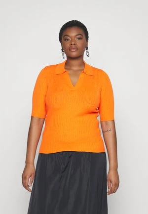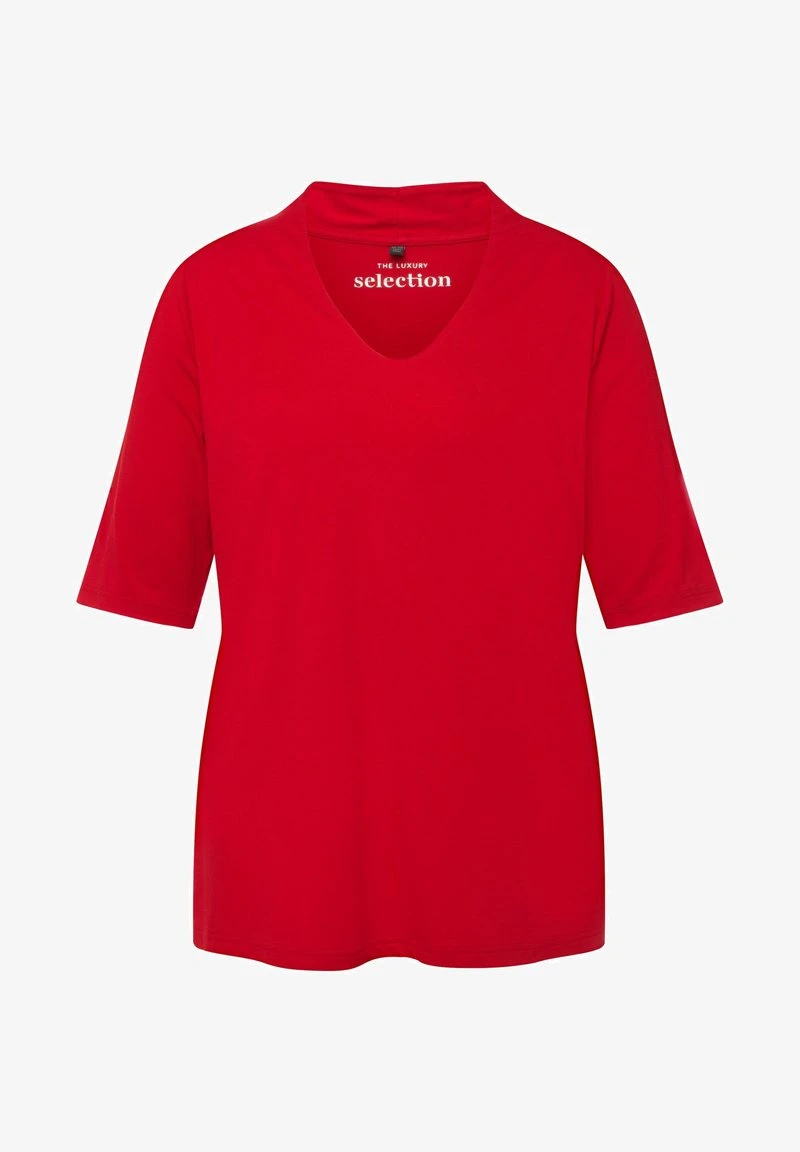 Ulla Popken À MANCHES COURTES COL JABOT ET COL EN V – T-Shirt Basic – Orange Clair