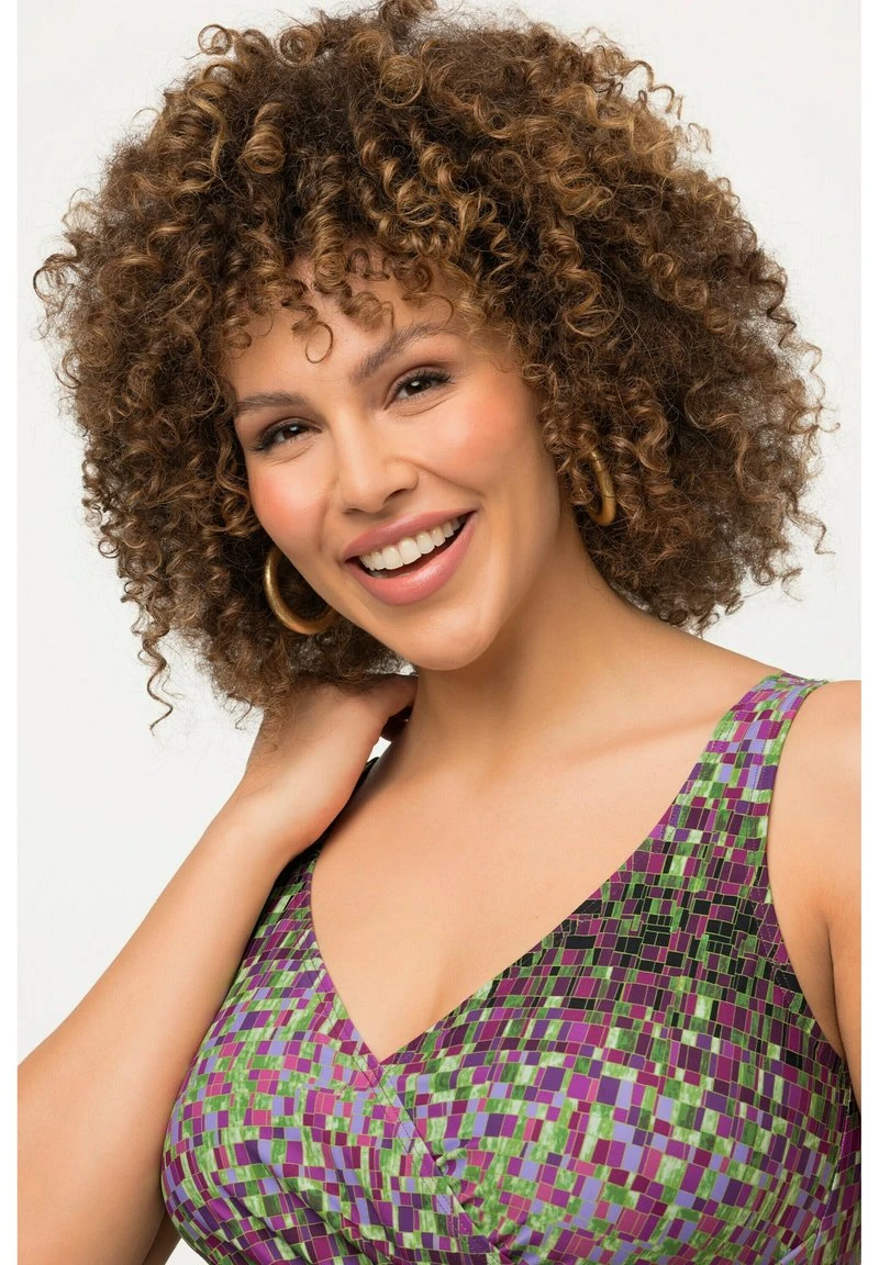 Ulla Popken À MANCHES COURTES PROFONDES DÉCOUPES DÉCOLLETÉ ROND – T-Shirt Print – Vert Pomme