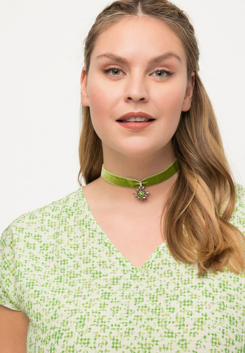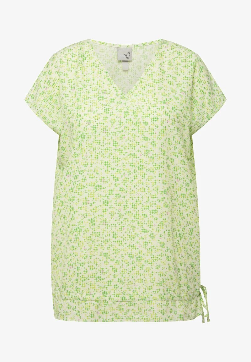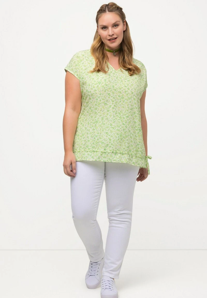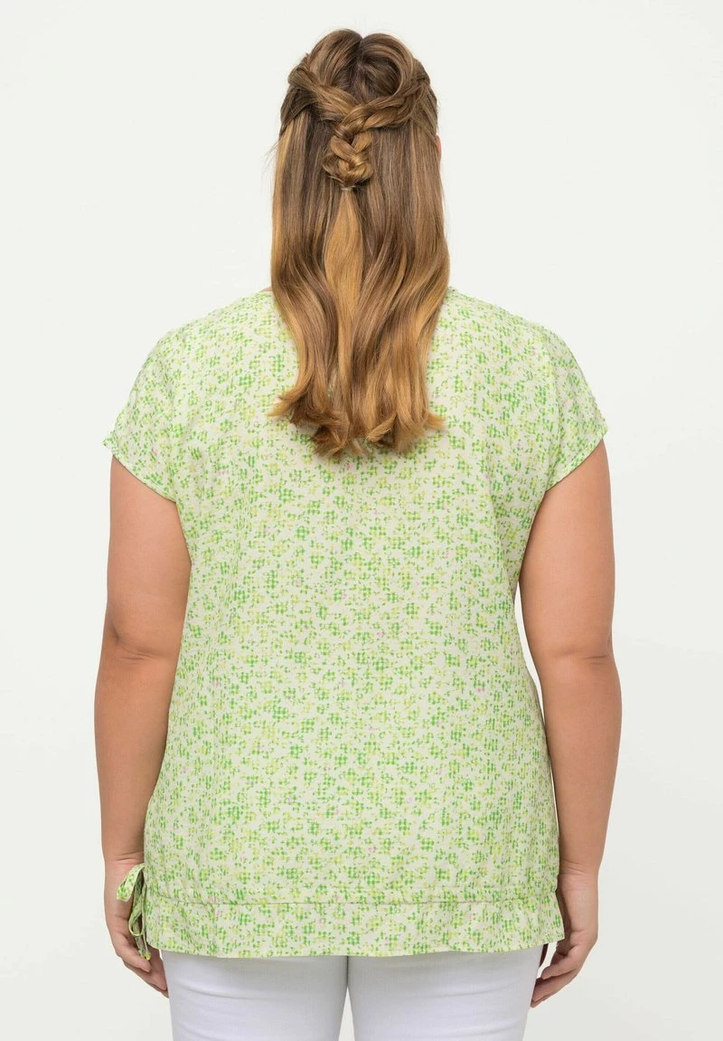 Ulla Popken À FLEURS. DÉCOLLETÉ EN V, MANCHES COURTES. CORDON DE SERR – Bluse – Herbe Verte