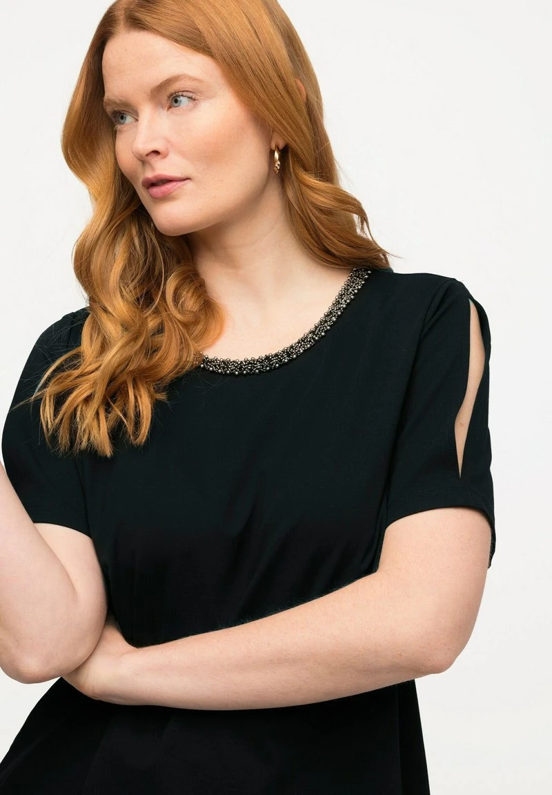 Ulla Popken À MANCHES COURTES DÉCOLLETÉ ROND AVEC LISERÉ FANTAISIE – Bluse – Noir