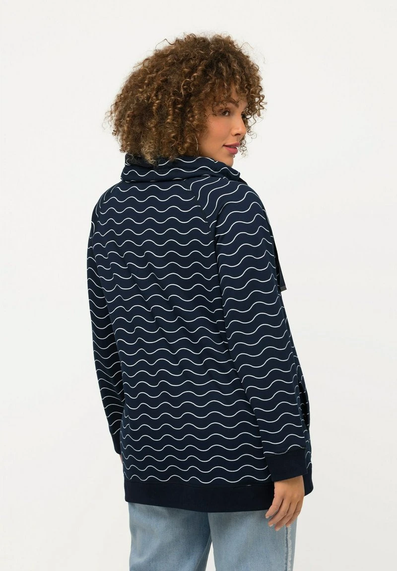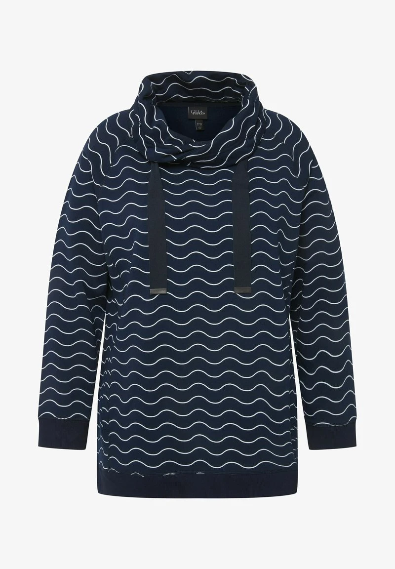 Ulla Popken À MANCHES LONGUES COL MONTANT ET IMPRIMÉ VAGUES – Sweatshirt – Bleu Nuit Mat