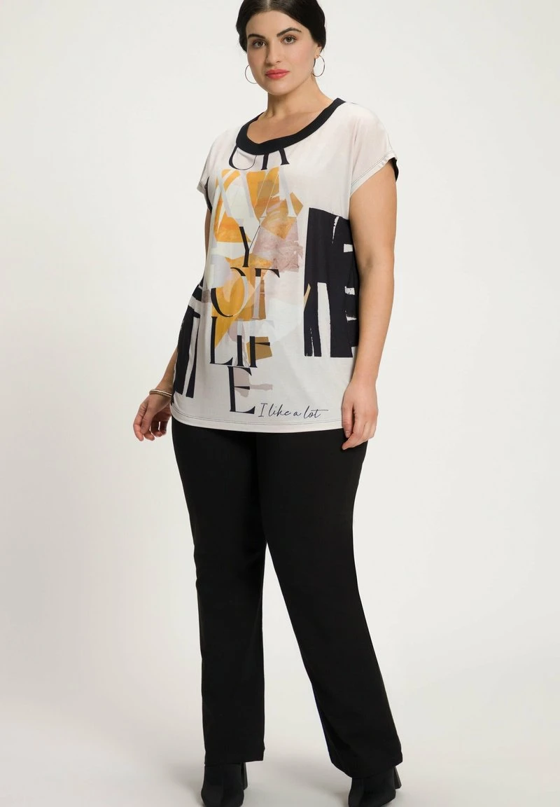 Ulla Popken BEDRUKT OVERSIZE, RONDE HALS KORTE MOUWEN – Bluse – Offwhite