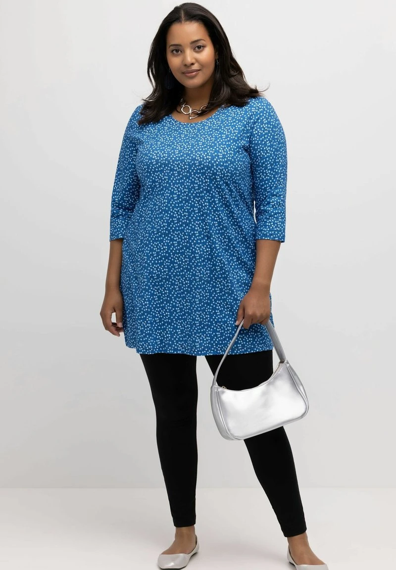 Ulla Popken BLÜTEN MUSTER, RUNDHALS, 3/4-ÄRMEL – Langarmshirt – Himmelblau