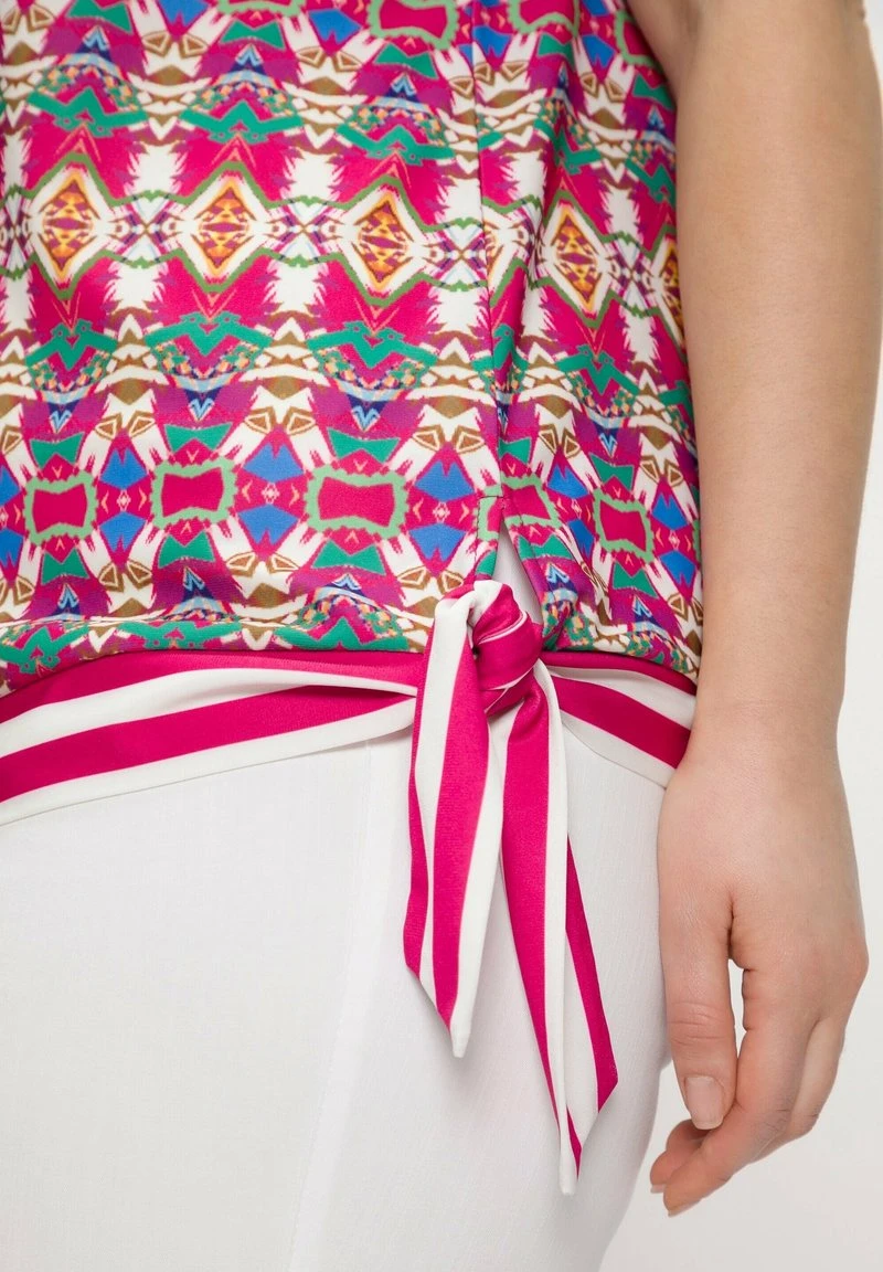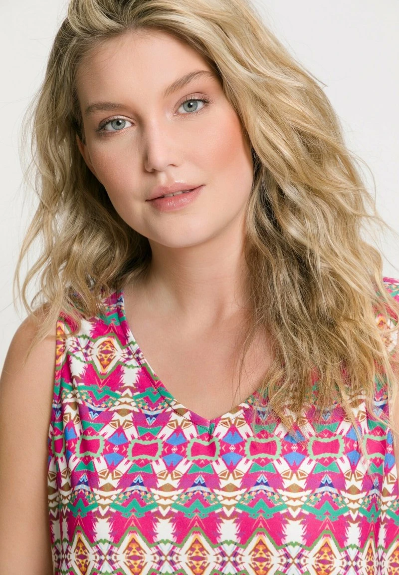 Ulla Popken LONG À MOTIF GRAPHIQUE DÉCOLLETÉ CARRÉ ET MANCHES COURT – T-Shirt Print – Bleu Marine