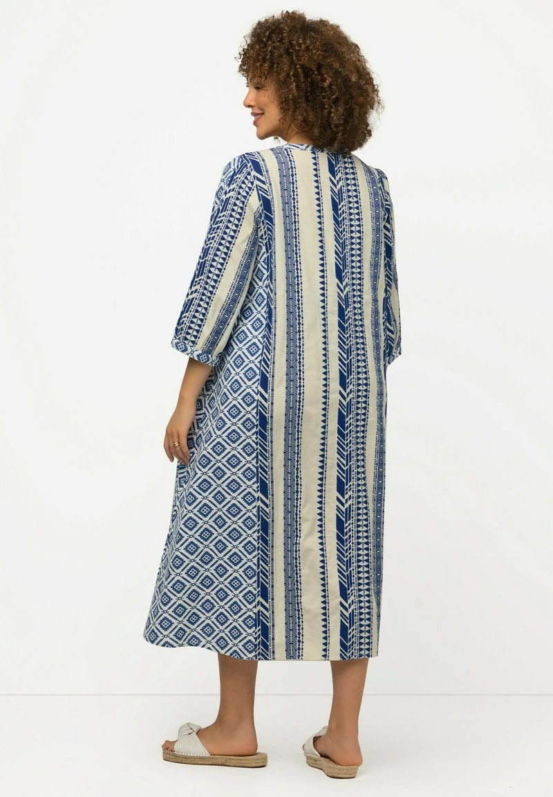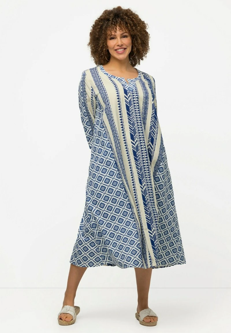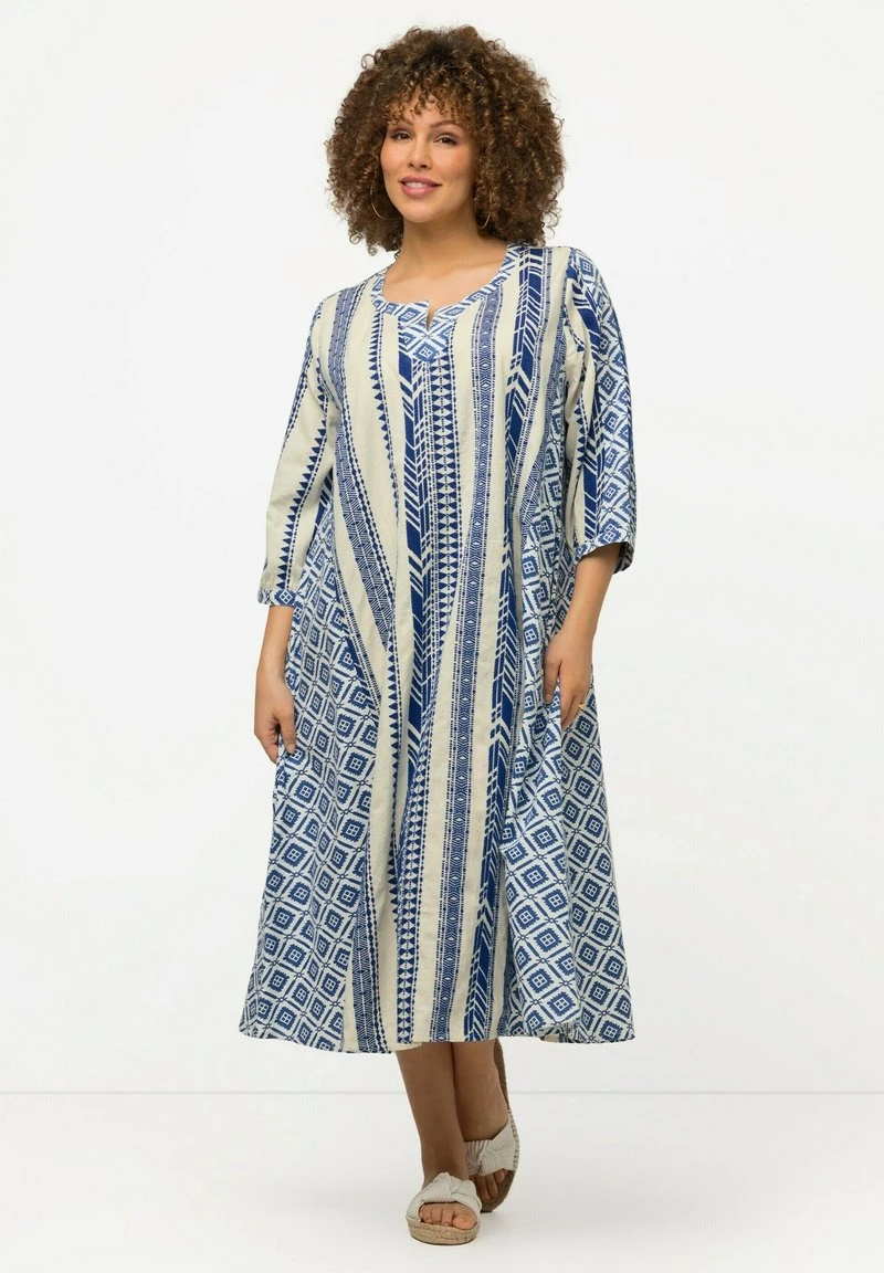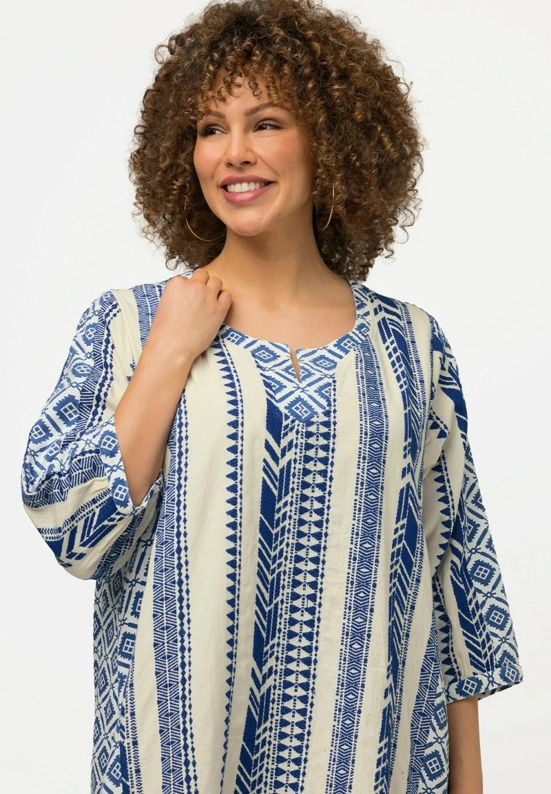Ulla Popken CAFTAN MOTIF ETHNIQUE COL TUNISIEN MANCHES – Freizeitkleid – Gris Bleu