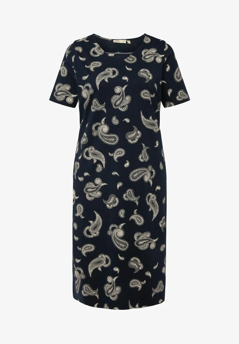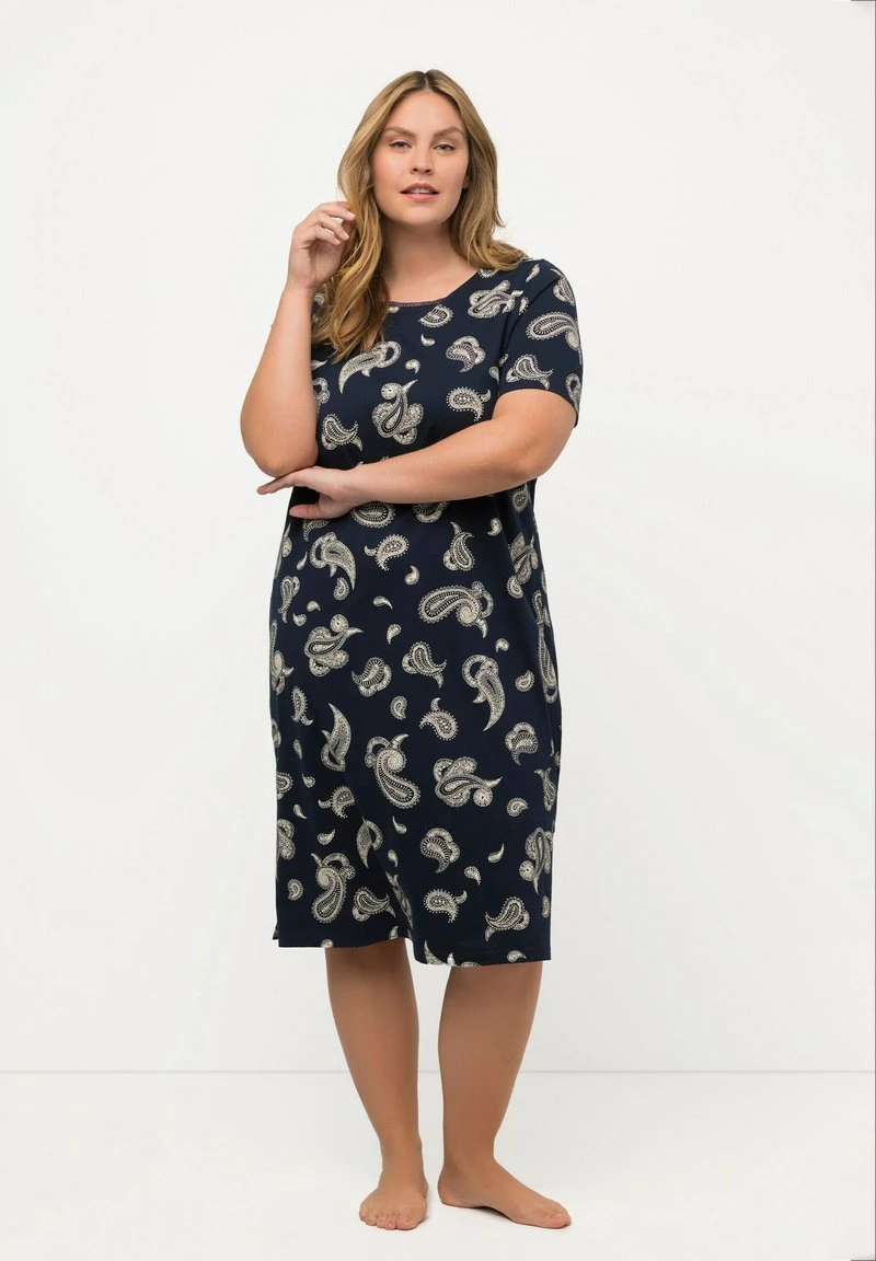 Ulla Popken DE NUIT MOTIF CACHEMIRE À COL EN V MANCHES COURTES ET C – Nachthemd – Marine