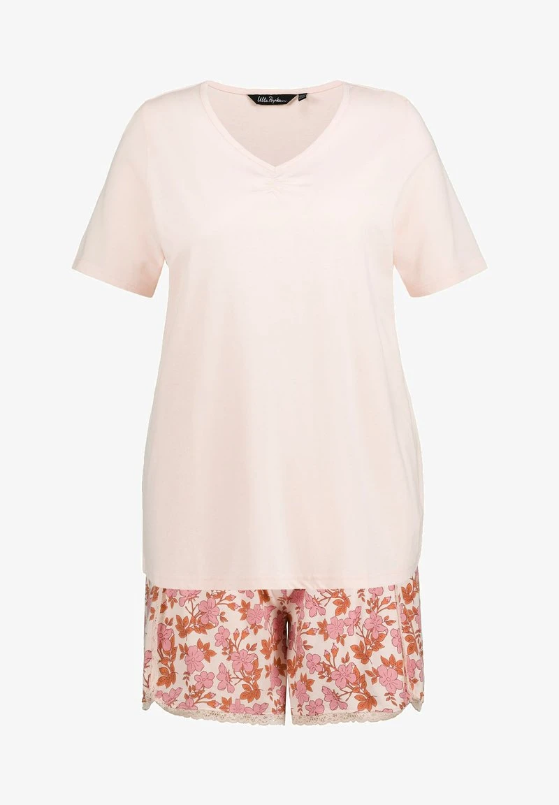 Ulla Popken DÉCOLLETÉ EN V MANCHES COURTES SET – Nachtwäsche Set – Rose