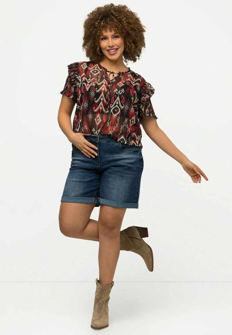 Ulla Popken LONG À MOTIF GRAPHIQUE DÉCOLLETÉ CARRÉ ET MANCHES COURT – T-Shirt Print – Bleu Marine