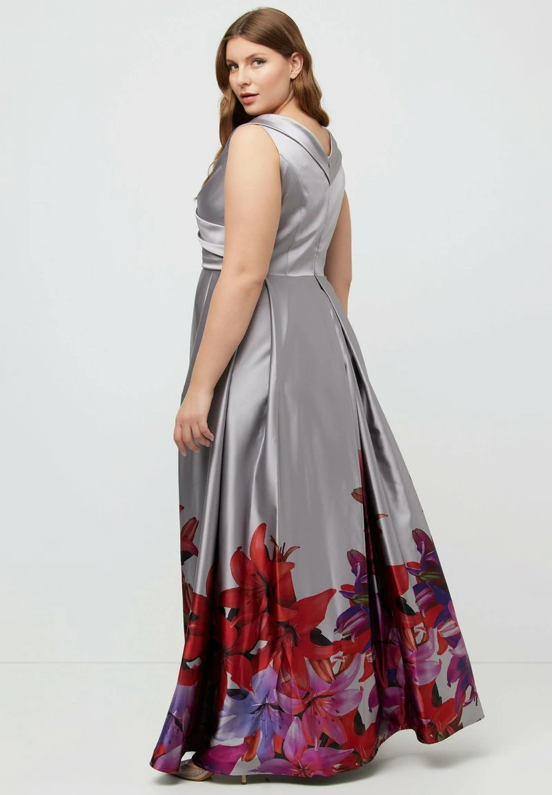 Ulla Popken FLORAL BORDER SLEEVELESS WRAP LOOK – Ballkleid – Gray Metal