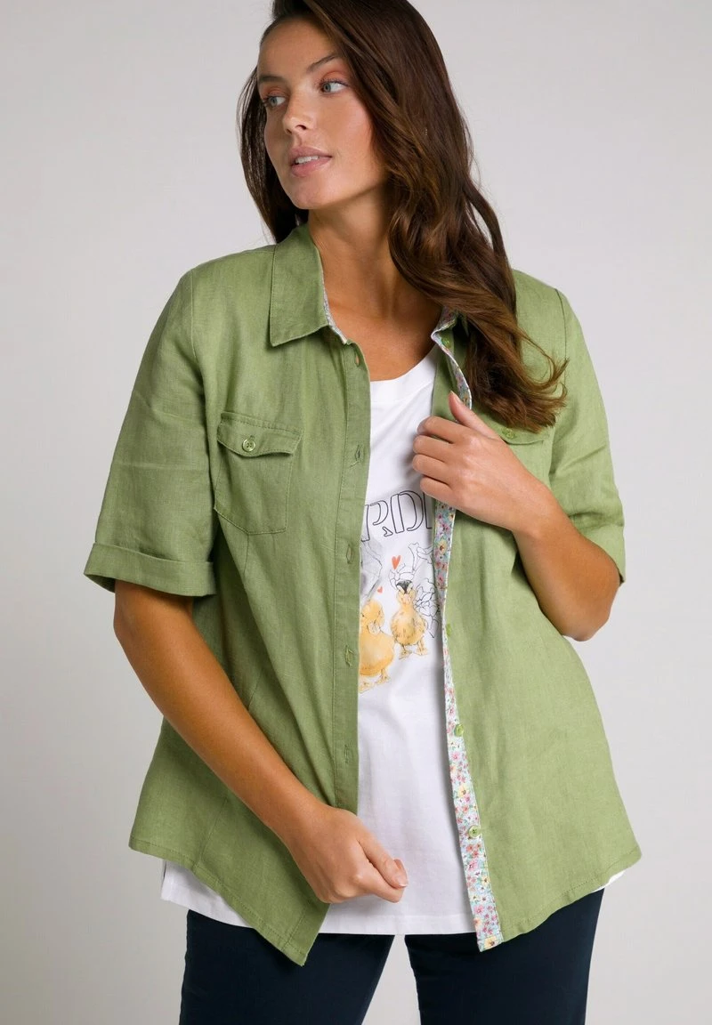 Ulla Popken FLOWER-DECOR – Hemdbluse – Erbse