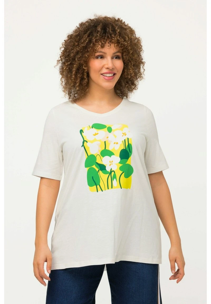 Ulla Popken FLOWER GRAPHIC – T-Shirt Print – Off White