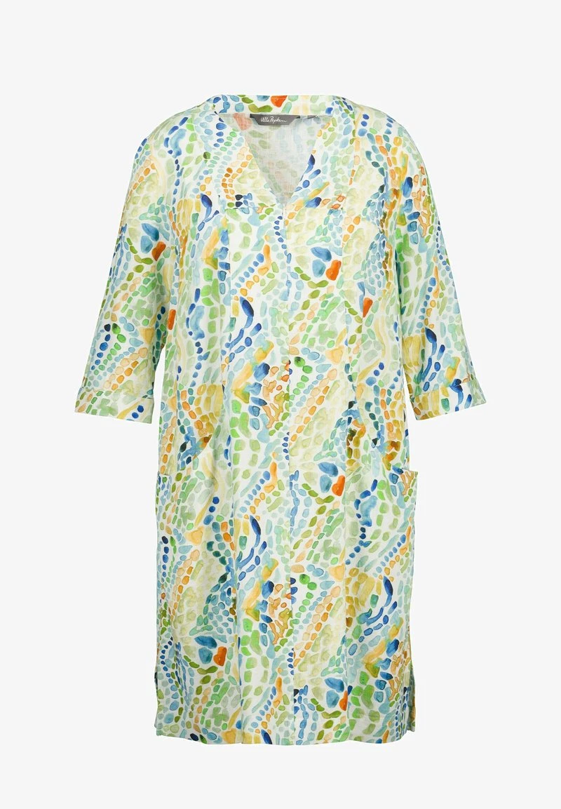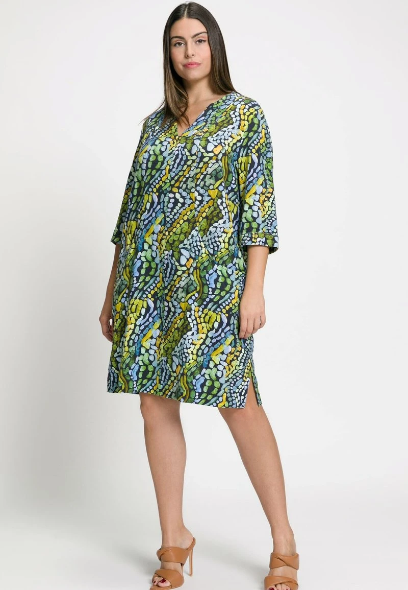 Ulla Popken LONG À MOTIF GRAPHIQUE DÉCOLLETÉ CARRÉ ET MANCHES COURT – T-Shirt Print – Bleu Marine