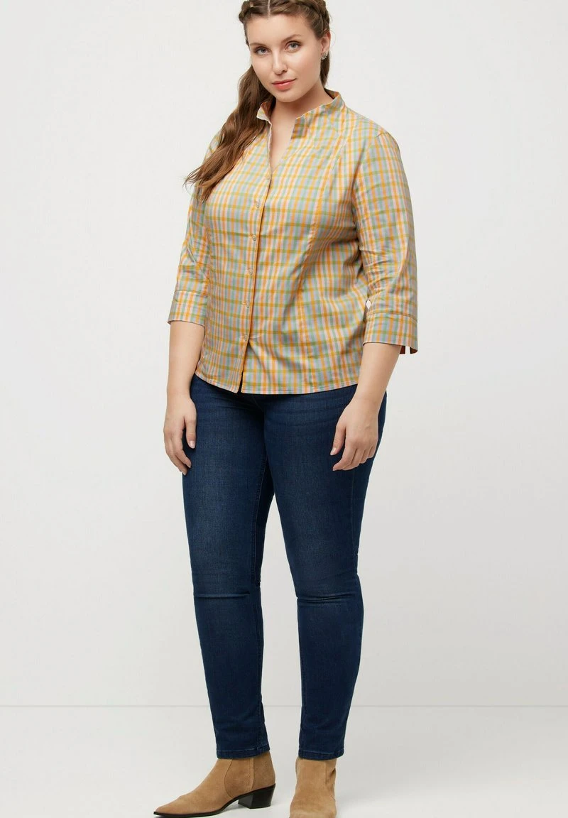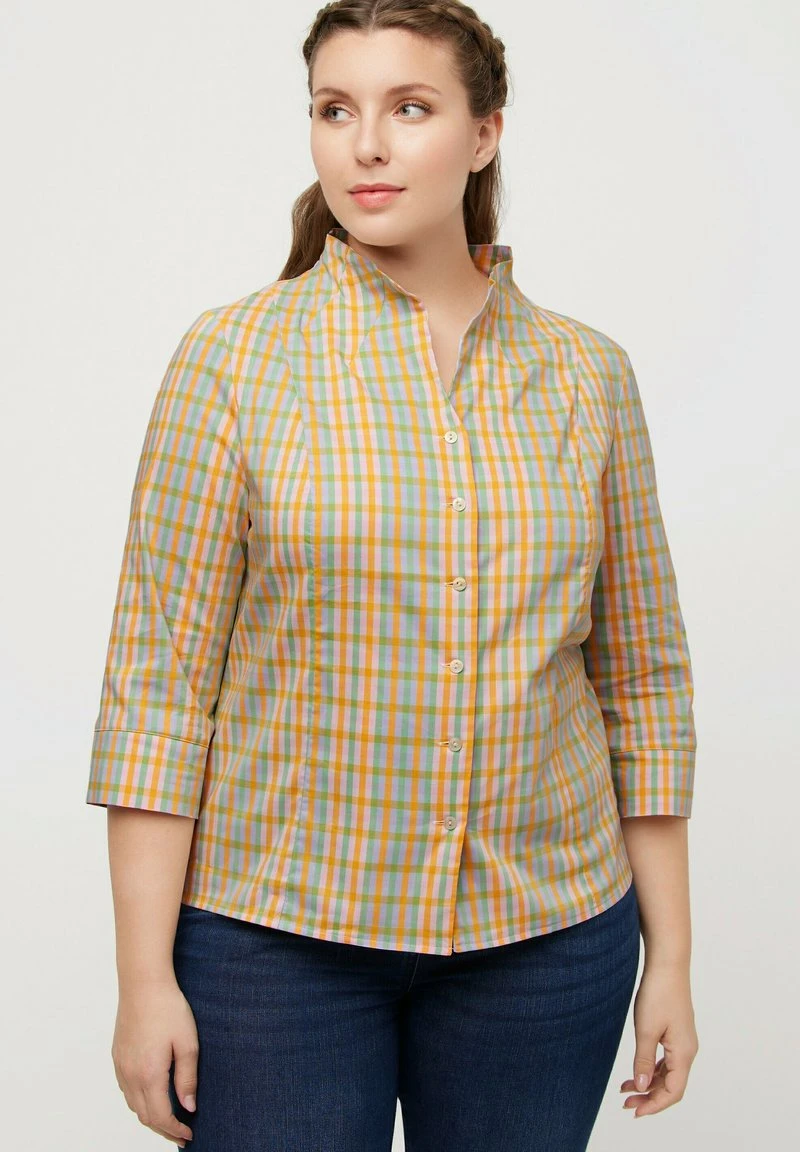 Ulla Popken KARO KELCHKRAGEN 3/4 ARM – Hemdbluse – Hooigroen