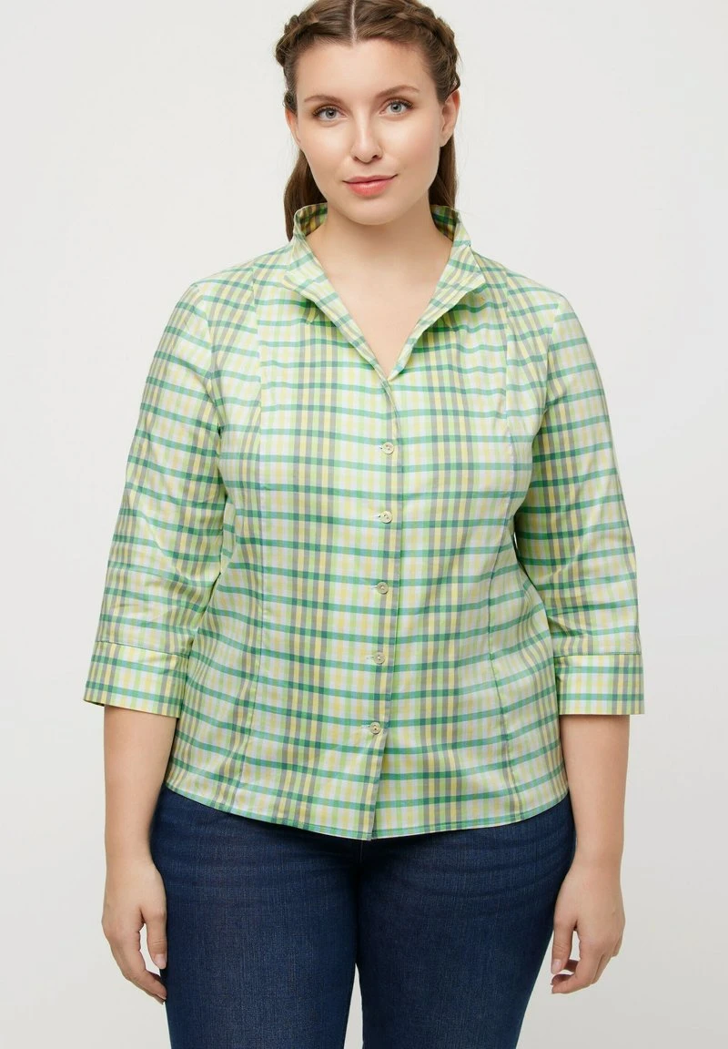 Ulla Popken KARO KELCHKRAGEN 3/4 ARM – Hemdbluse – Lichtblauw