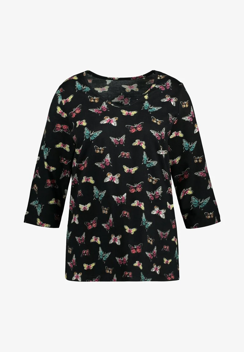 Ulla Popken LONG À MOTIF GRAPHIQUE DÉCOLLETÉ CARRÉ ET MANCHES COURT – T-Shirt Print – Bleu Marine
