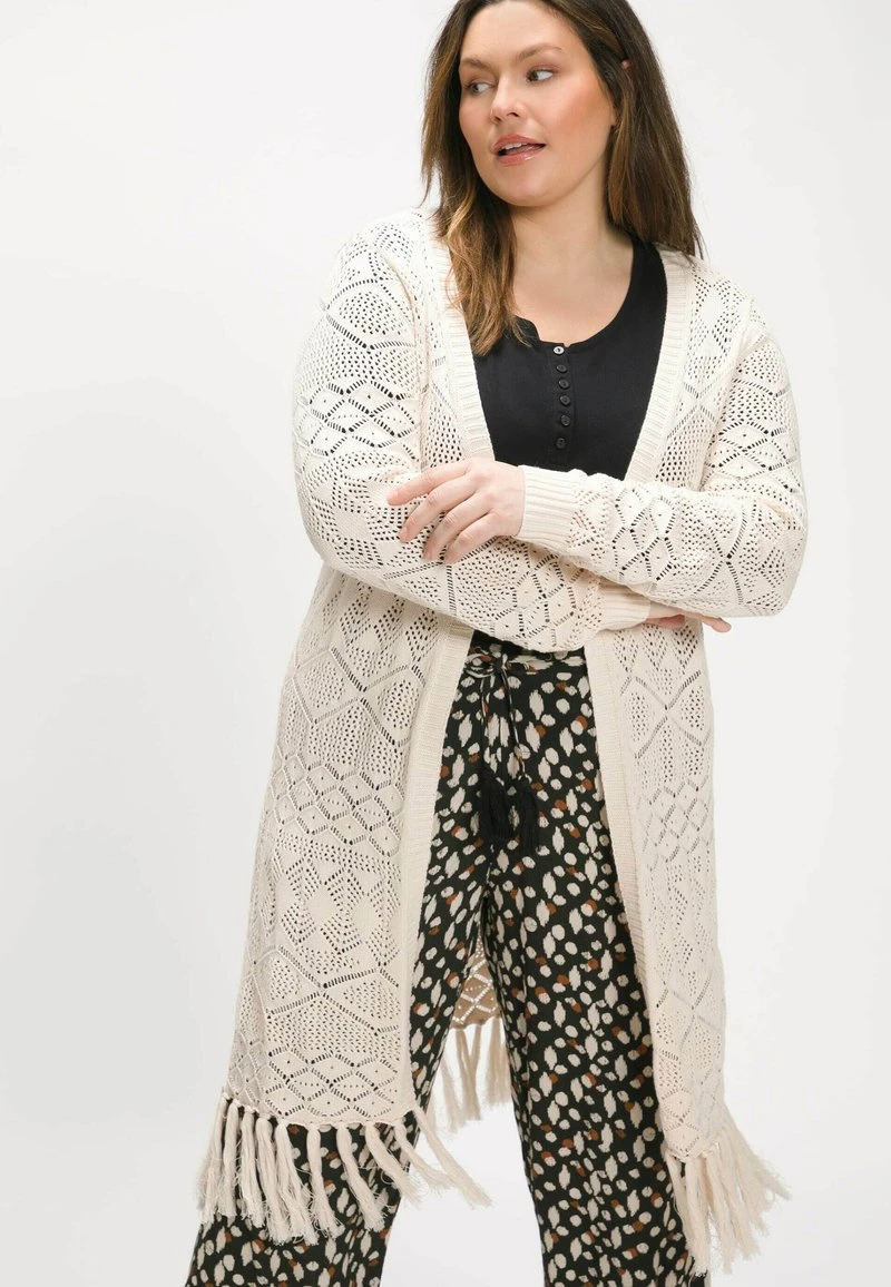 Ulla Popken LONG OURLET EFFILOCHE COUPE OUVERTE – Strickjacke – Champagne Clair