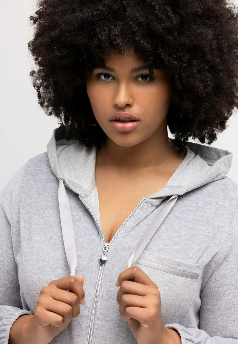 Ulla Popken LOUNGEWEAR KAPUZE – Sweatjacke – Hellgrau Mélange