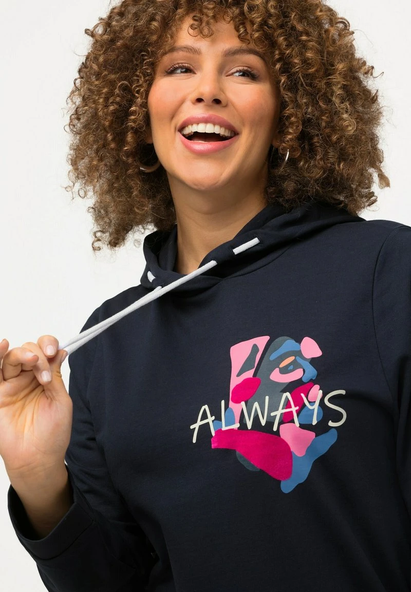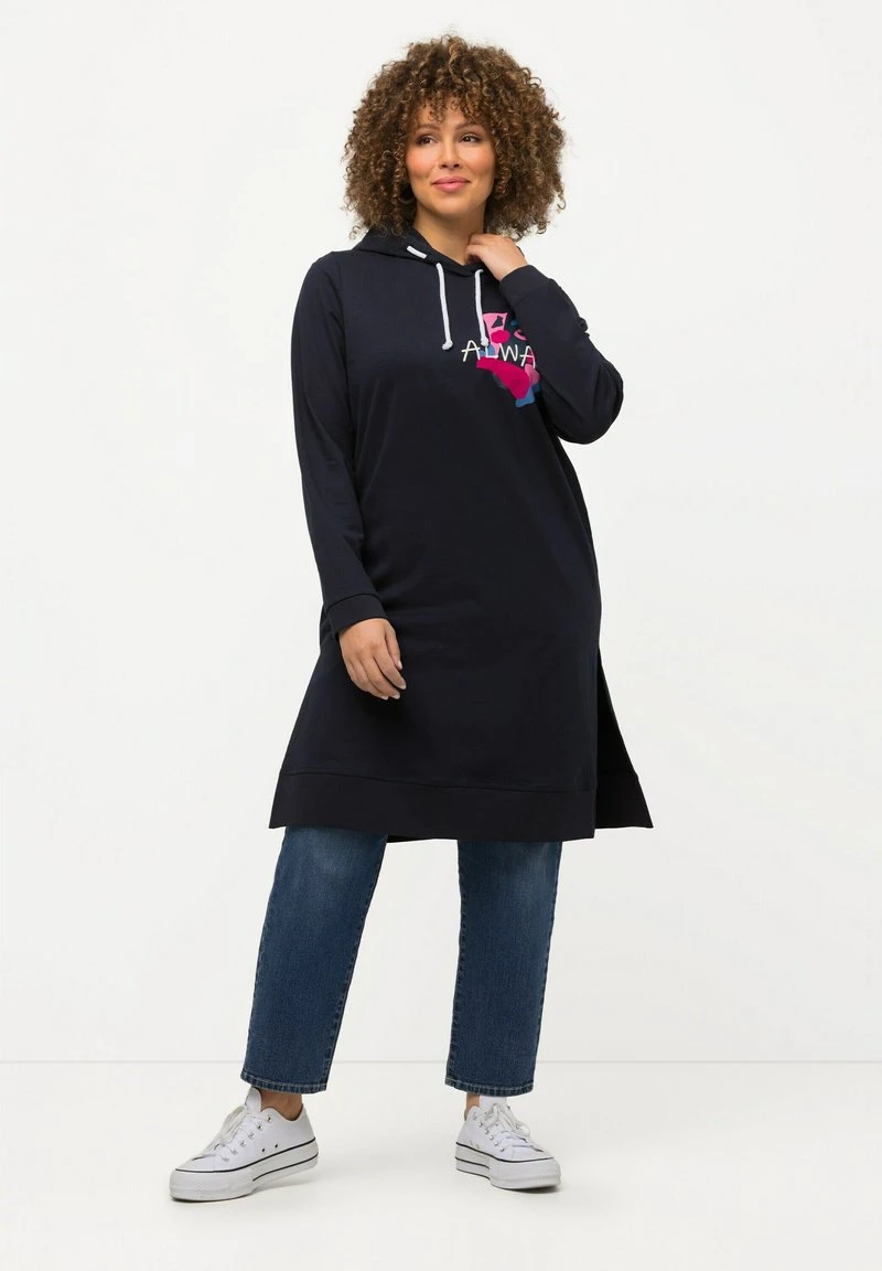 Ulla Popken MESSAGE IMPRIMÉ FENTE SUR LE CÔTÉ E – Kapuzenpullover – Marine