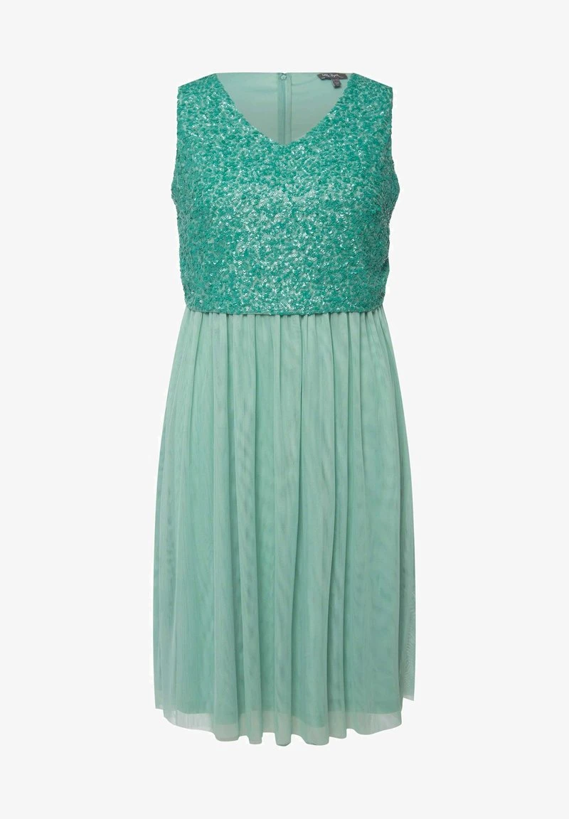 Ulla Popken MIDI À PAILLETTES SANS MANCHES COL EN V – Cocktailkleid/festliches Kleid – Gris Turquoise