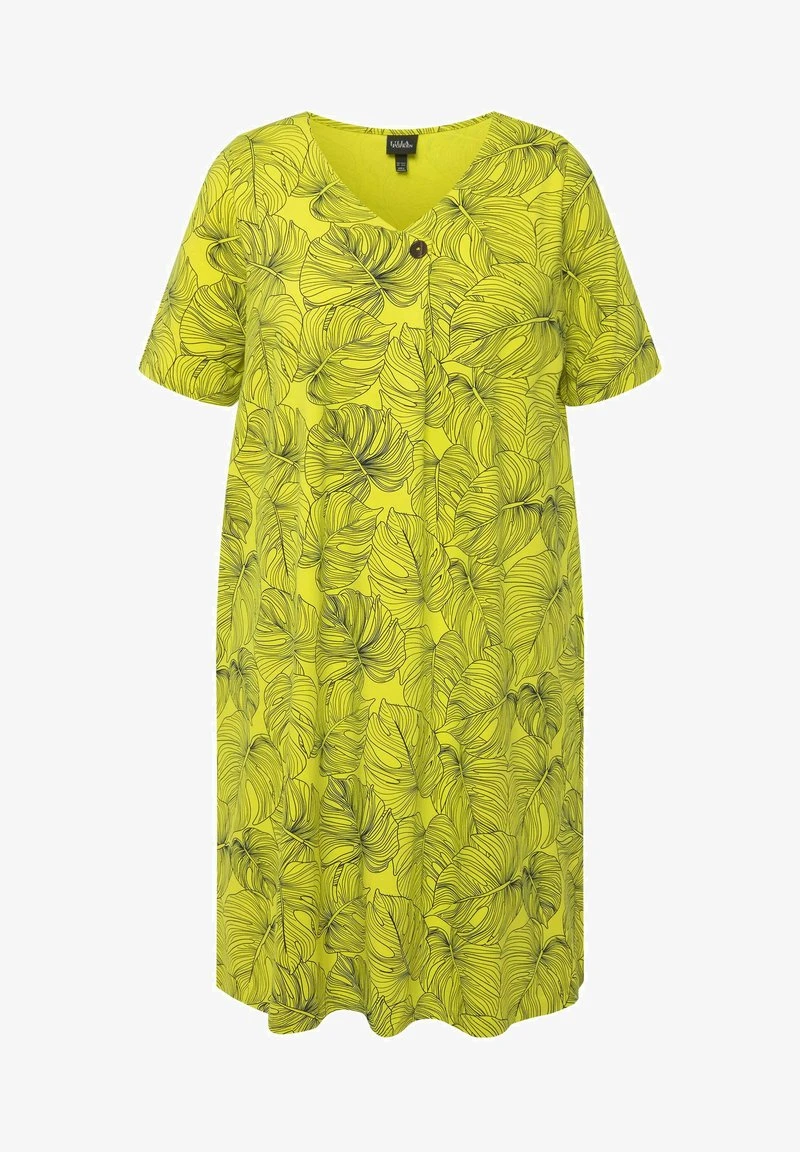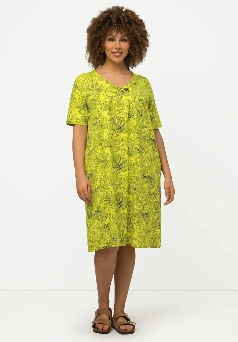 Ulla Popken MIDI MANCHES COURTES ET DÉCOLLETÉ EN V SILHOUETTE EN A I – Freizeitkleid – Vert/jaune