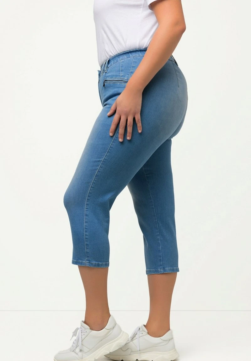 Ulla Popken MONY 7/8 TAILLE ÉLASTIQUE POCHES ZIPPÉES – Jeans Shorts – Bleu Clair