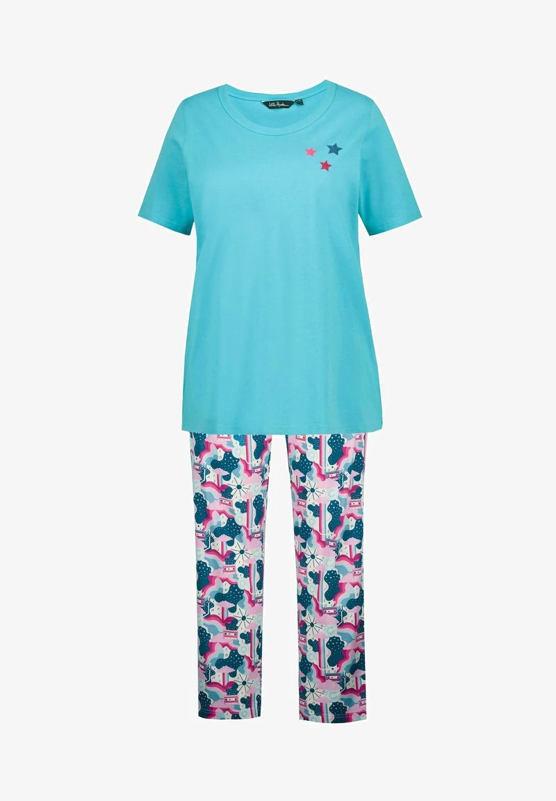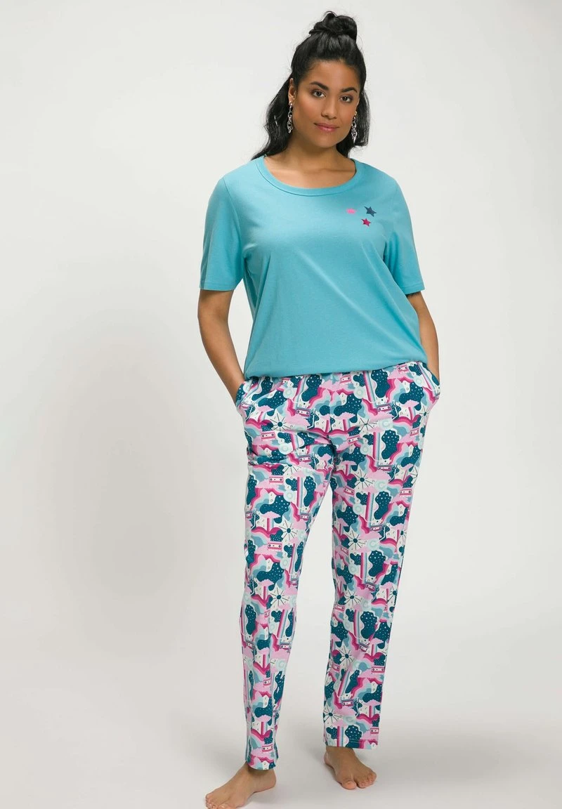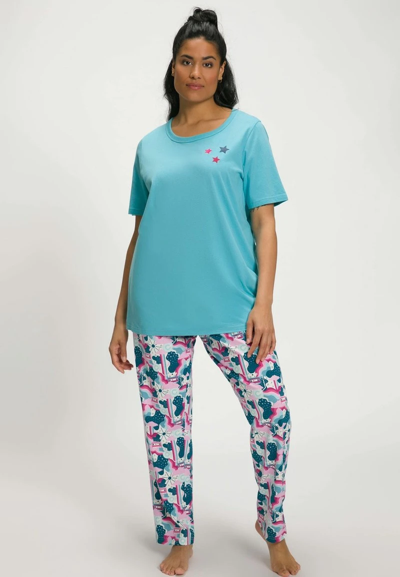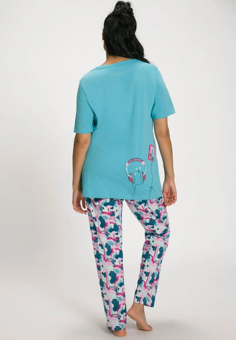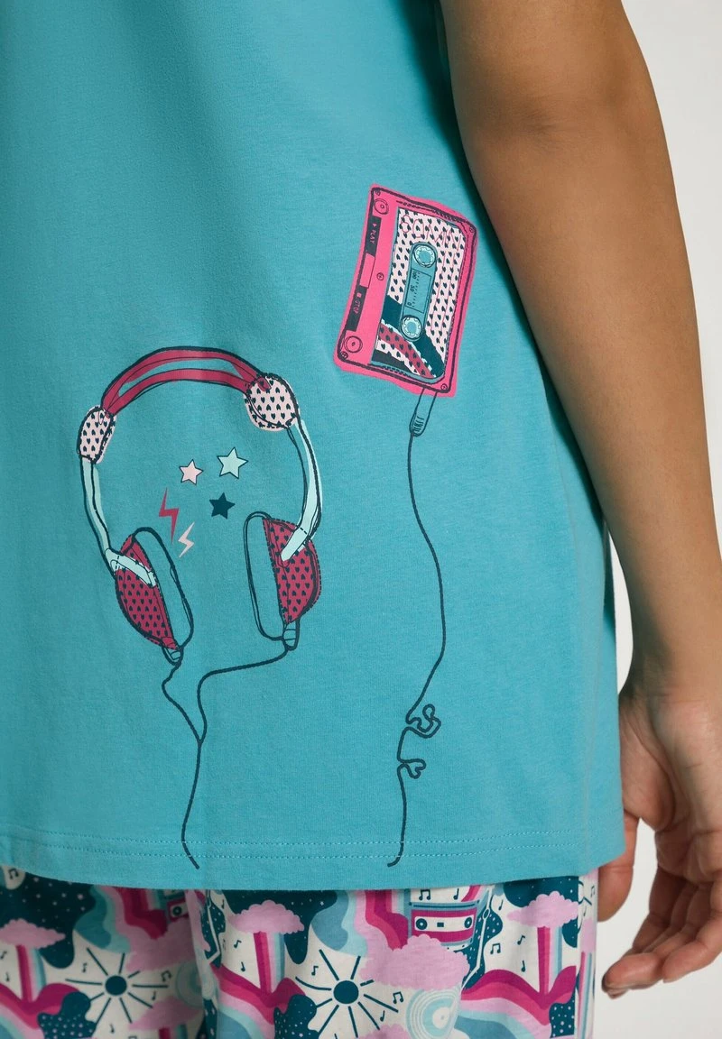 Ulla Popken MUSIK RUNDHALS HALBARM – Nachtwäsche Set – Helles Petrol