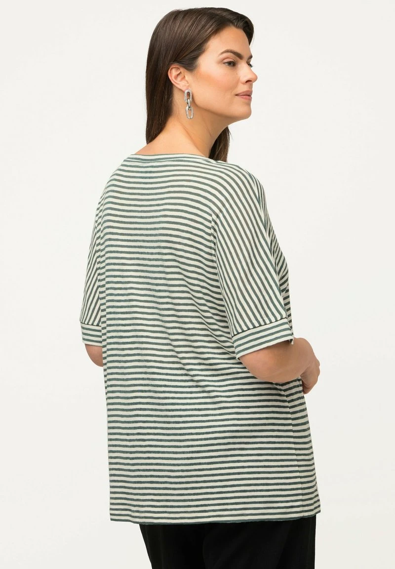 Ulla Popken OVERSIZED DÉCOLLETÉ ROND ET MANCHES COURTES – T-Shirt Print – Roseau Clair