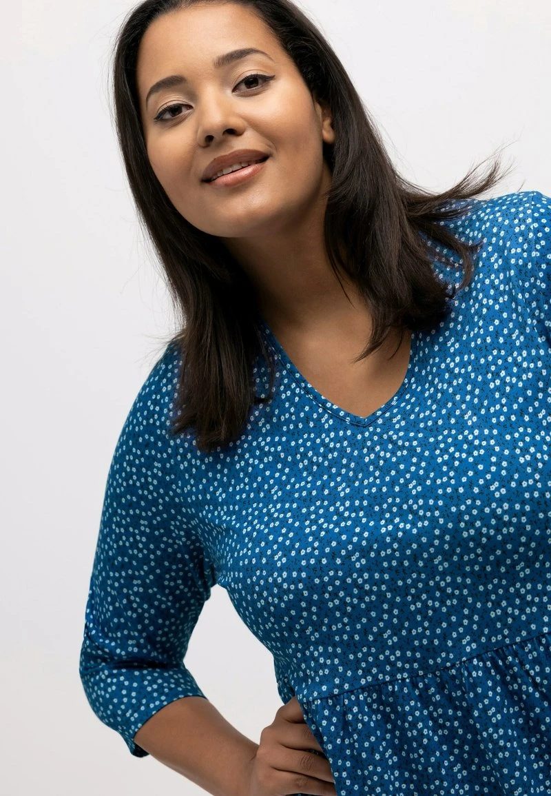 Ulla Popken PASTELL BLÜTEN 3/4 ARM – Jerseykleid – Himmelblau