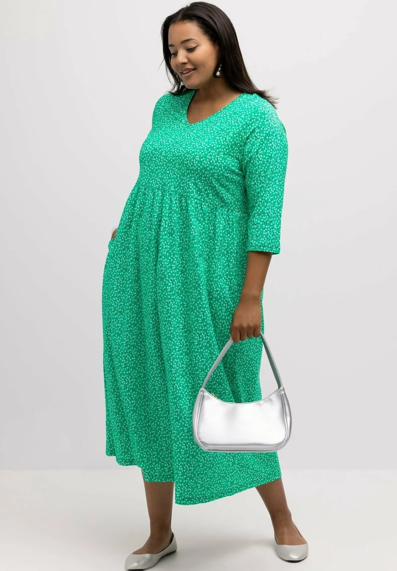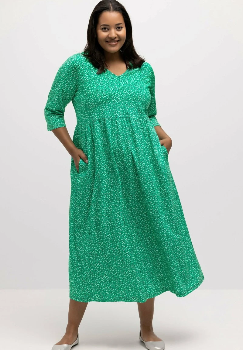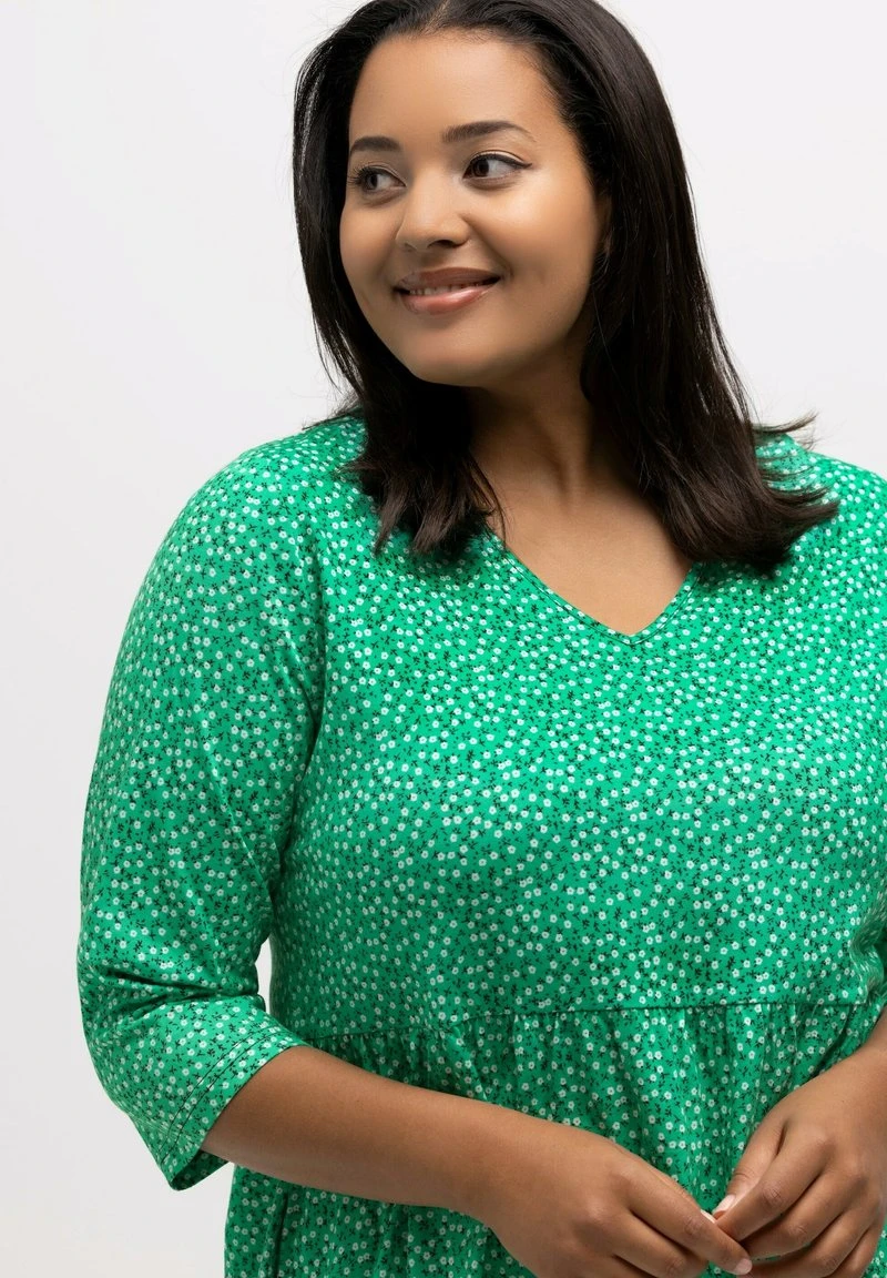 Ulla Popken PASTELL BLÜTEN 3/4 ARM – Jerseykleid – Turquoise Multi