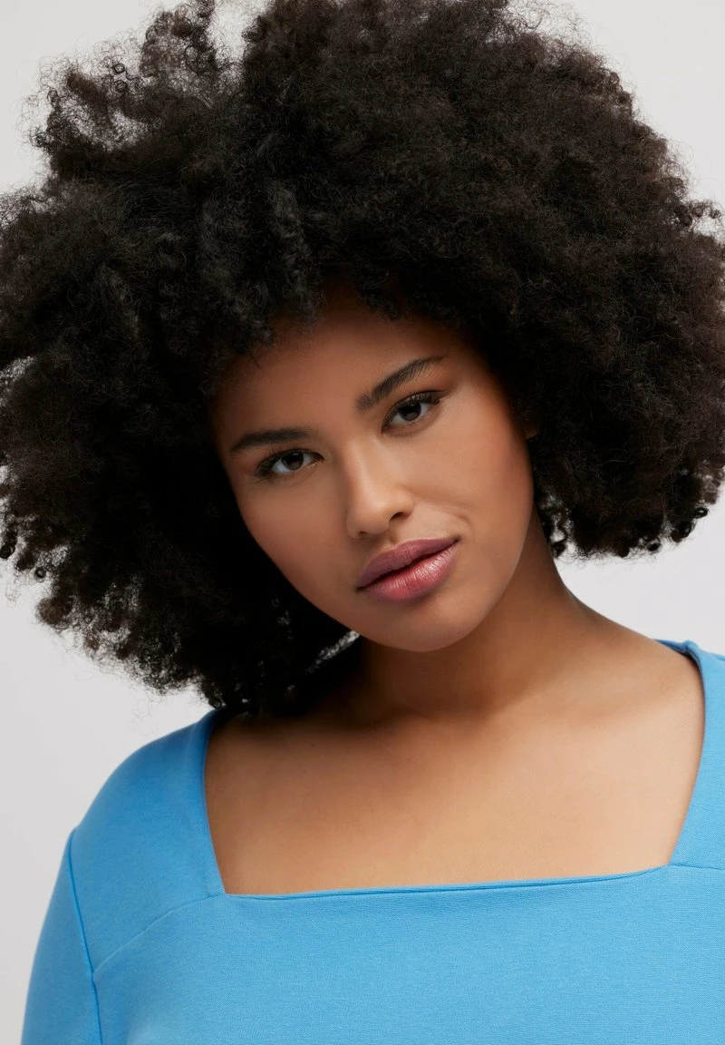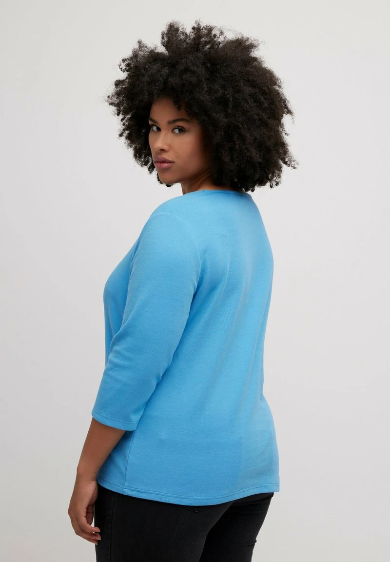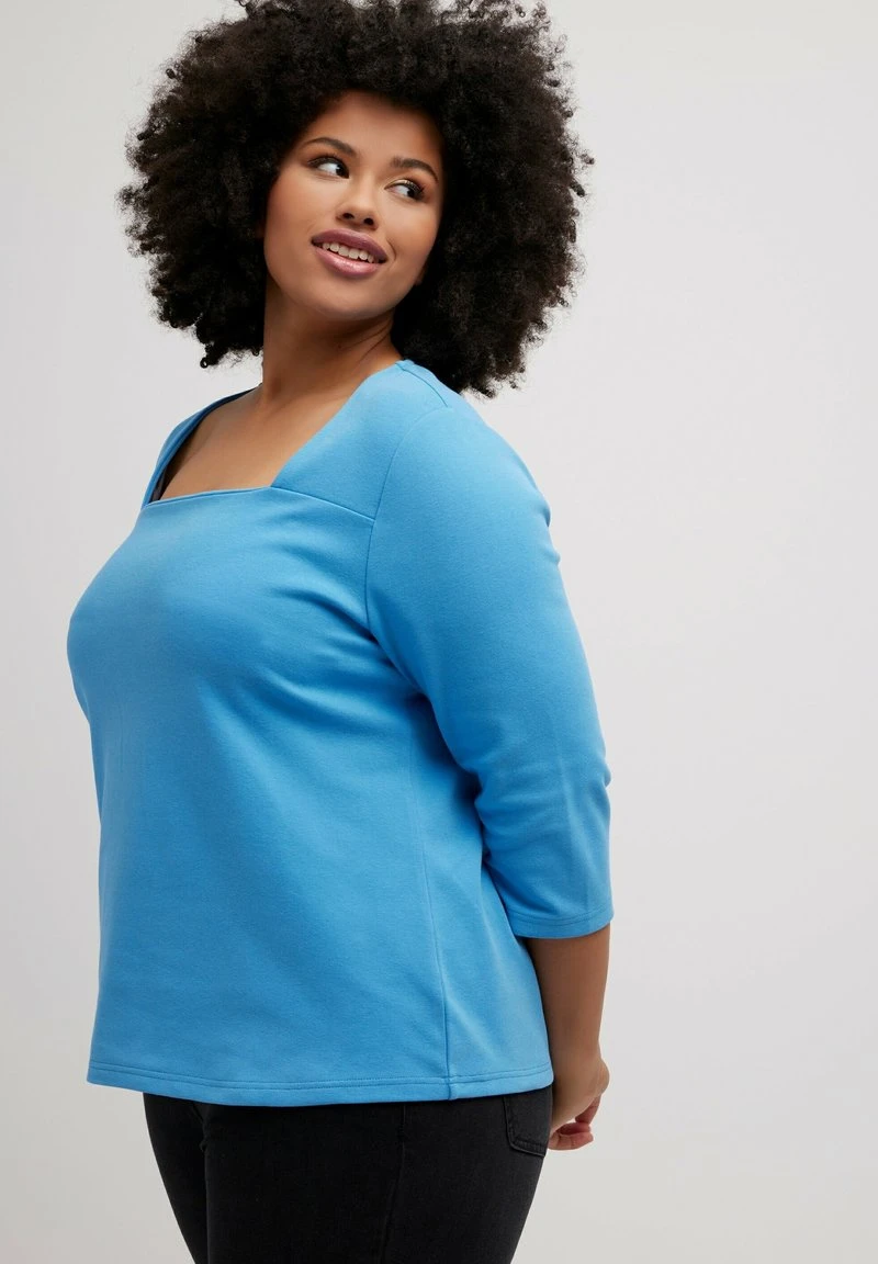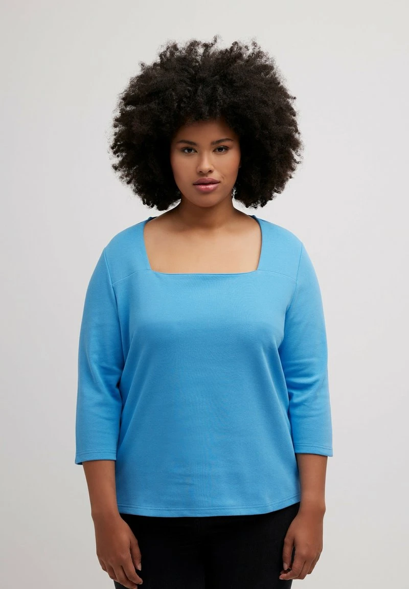 Ulla Popken QUERNAHT, CLASSIC, CARRÉE-AUSSCHNITT, 3/4-ARM – Langarmshirt – Stahlblau