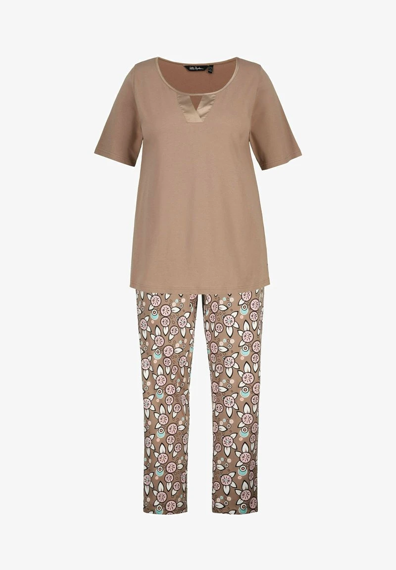 Ulla Popken SET COL ROND MANCHES MI-LONGUES – Nachtwäsche Set – Taupe