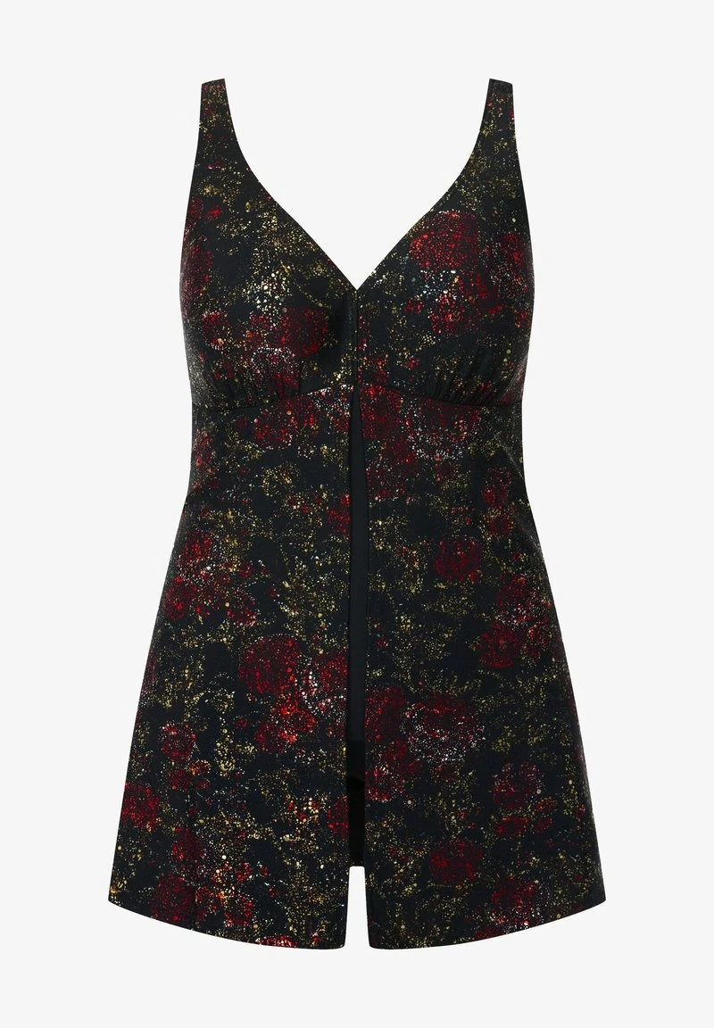 Ulla Popken SHIMMER PRINT SPLIT – Badeanzug – Black