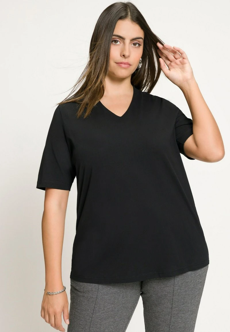 Ulla Popken SIERSTEENTJES KELKKRAAG V-HALS KORTE MOUWEN – Bluse – Zwart