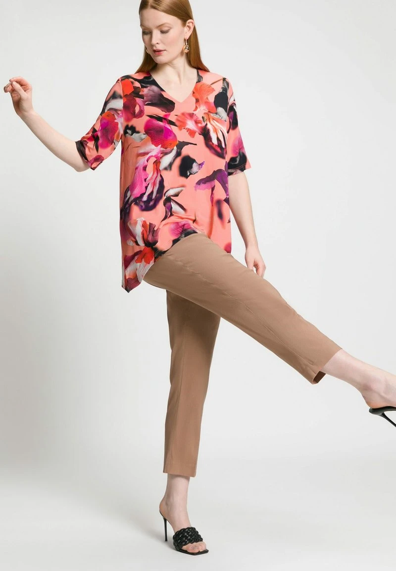 Ulla Popken À MANCHES COURTES PROFONDES DÉCOUPES DÉCOLLETÉ ROND – T-Shirt Print – Vert Pomme