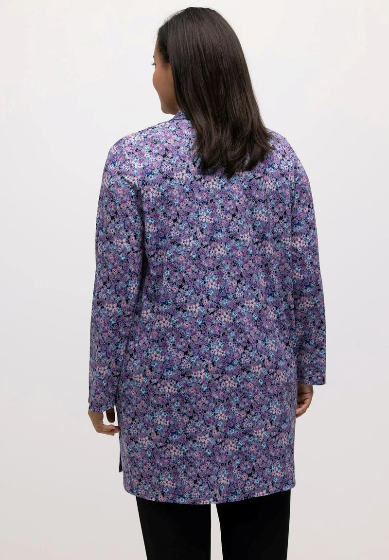 Ulla Popken LONG À MOTIF GRAPHIQUE DÉCOLLETÉ CARRÉ ET MANCHES COURT – T-Shirt Print – Bleu Marine