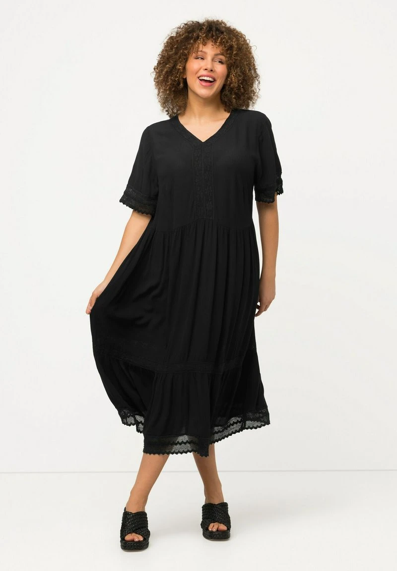 Ulla Popken STYLE AVEC DENTELLE SUR LE COL EN V – Freizeitkleid – Noir