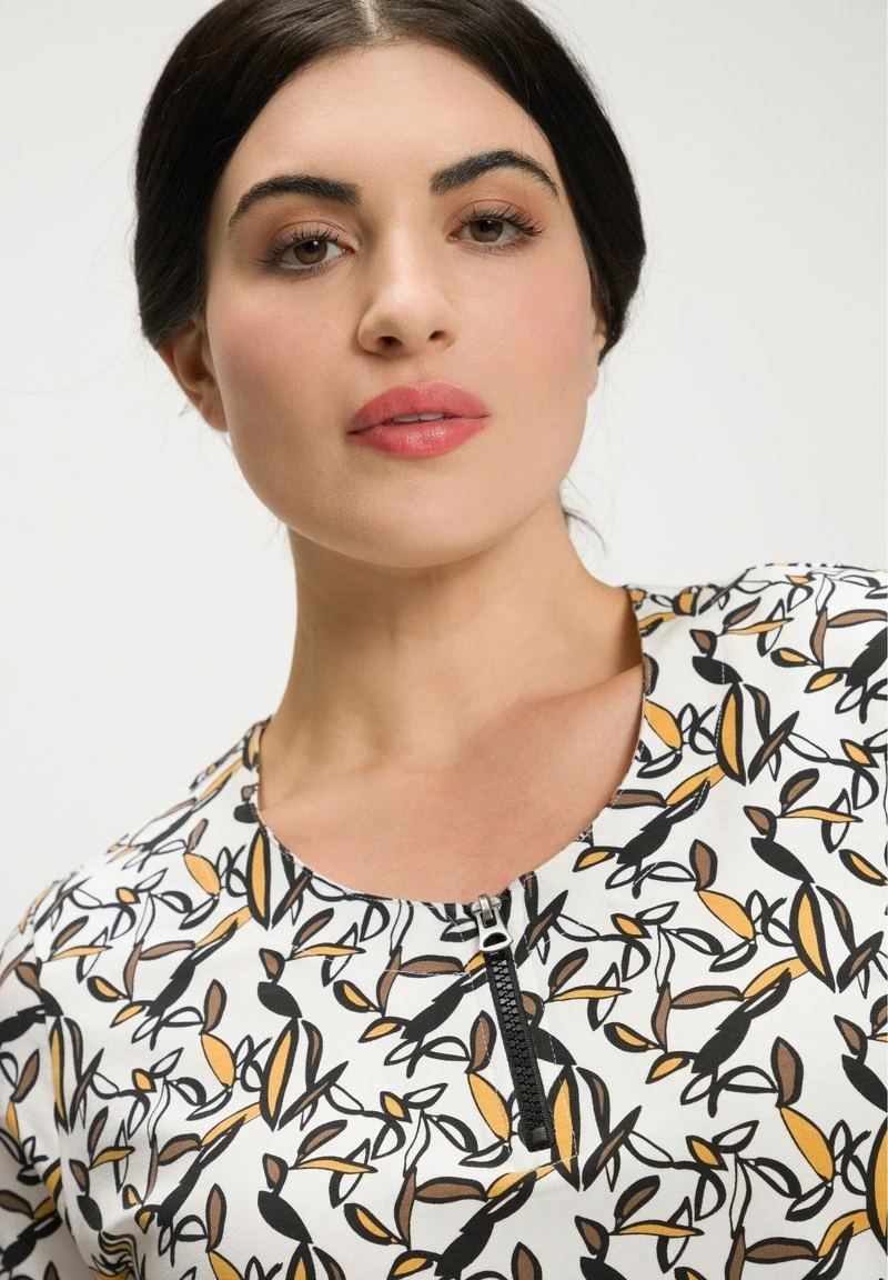 Ulla Popken LONG À MOTIF GRAPHIQUE DÉCOLLETÉ CARRÉ ET MANCHES COURT – T-Shirt Print – Bleu Marine