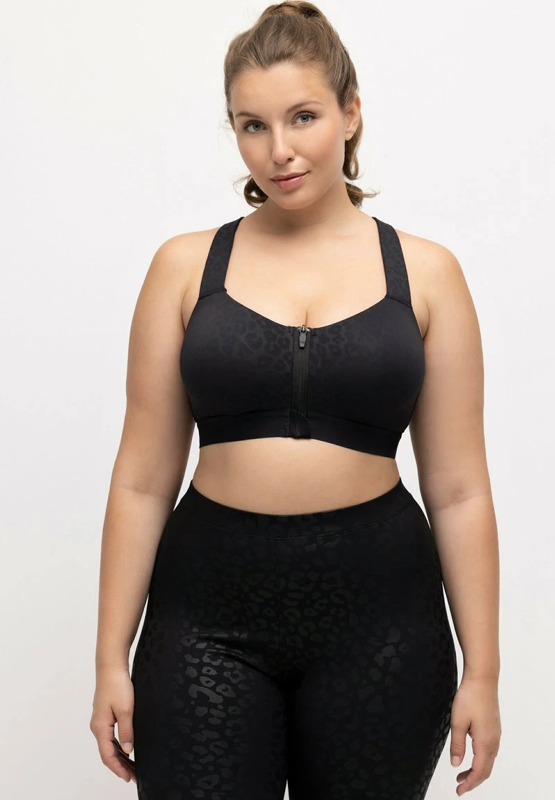Ulla Popken TONAL LEOPARD – Sport-BH Mit Leichter Stützkraft – Black